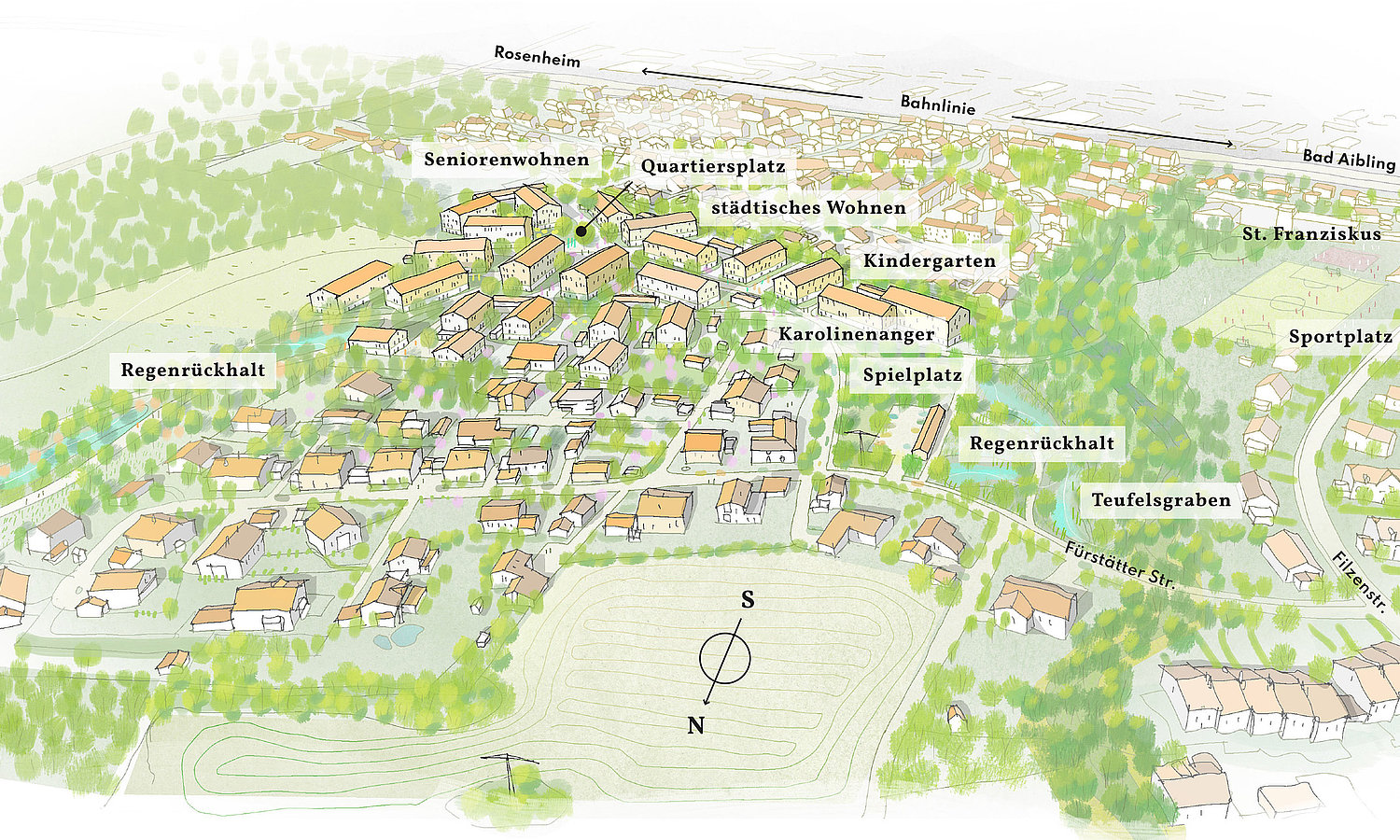 Im vorhabenbezogenen Bebauungsplan für das Areal im Kolbermoorer Nordosten sollen folgende Punkte nun konkretisiert und rechtlich verbindlich geregelt werden: