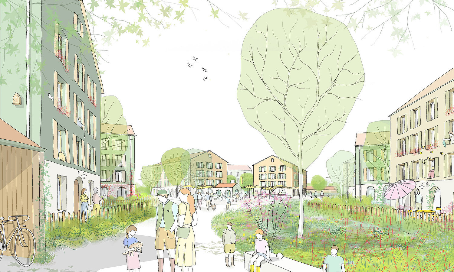 Kolbermoor positiv und nachhaltig weiterentwickeln: Mit dem neuen Quartier „Leben am Karolinenanger“ entsteht nicht nur ökologisch und sozial nachhaltiger Wohnraum sondern auch eine lebendiger Ort der Begegnung und Gemeinschaft. Hier entsteht ein Zuhause, das Platz für Vielfalt und Miteinander bietet – für alle Bürgerinnen und Bürger Kolbermoors.